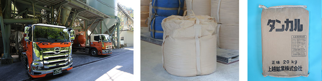 当社では粉粒体運搬車によるバラ輸送の他、フレコン、紙袋入りの製品もお届けしております。