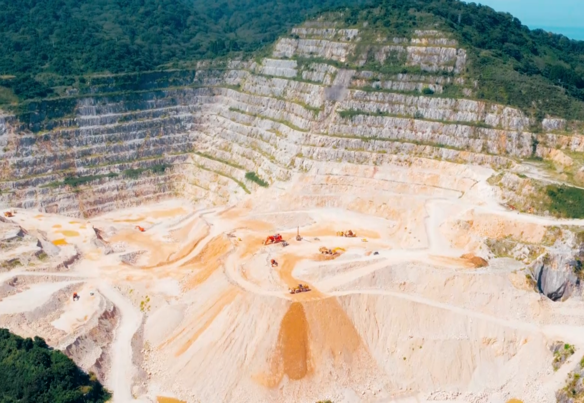 石灰石鉱床は一般に山地を形成しており、採掘方法は露天採掘の立坑式階段採掘法を採用しています。